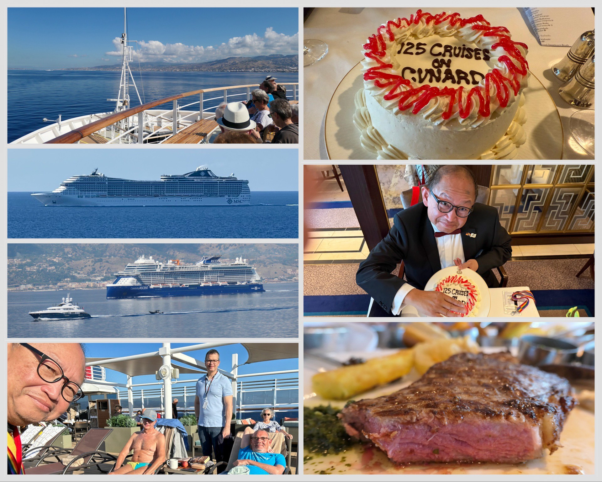 After my bad luck in Istanbul, the Celebrity Ascent came along at my wits' end. I couldn't get a more perfect shot of her. It would have been nice if she'd been on the Magic Carpet from the other side.I'm a big fan of the alternative dinners at the Lido. Unfortunately, they're now serving La Piazza every evening. Sadly, there's no Riviera where I particularly enjoy the veal saltimbocca. I don't really feel at home with La Piazza. They prepared it especially for us on QUEEN MARY 2 2025. The absolute best, however, was Nordlys on QUEEN VICTORIA 2022. I chatted with the F&B Service Manager, Iljcho, about what I'd noticed, and he explained that the ship hadn't been in Southampton all season. And somehow, they hadn't been able to get their hands on the usual fresh cheese. I can understand that. We also talked about the offerings at the Lido: it was meant to be a one-off experiment. There will be at least two different menus again on the next cruise.