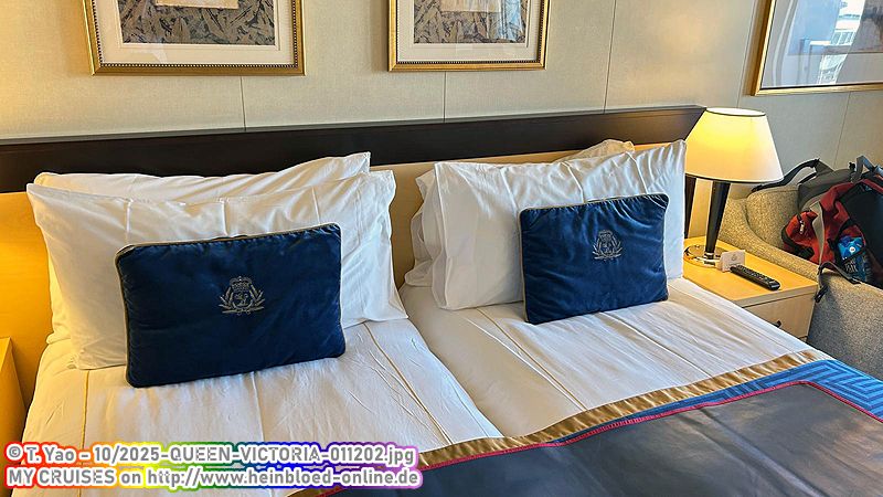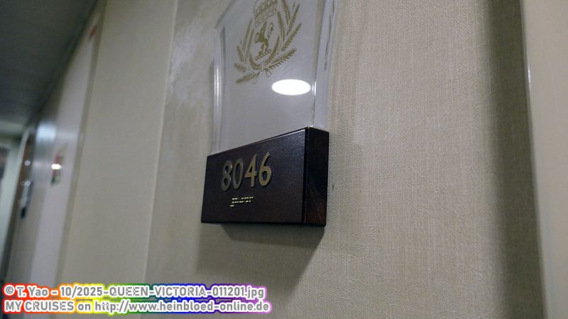 Wie üblich haben wir über Dorothy von Cruise Brothers gebucht. Eigentlich eine normale Balkonkabine im Britannia Restaurant. Zu meinem Erstaunen erhielt ich bereits ein Jahr vor Reisebeginn ein kostenloses Upgrade in den Britannia Club. Daher erübrigten sich weitere Preisanpassungen: Sie wären damit verbunden, dass ich mein Upgrade wieder verlieren würde. Da die Kabine ja nicht von mir ausgewählt wird, verlaufen wir uns ständig. Das ist eine Lage, die ich nie buchen würde. So weit weg vom Treppenhaus.