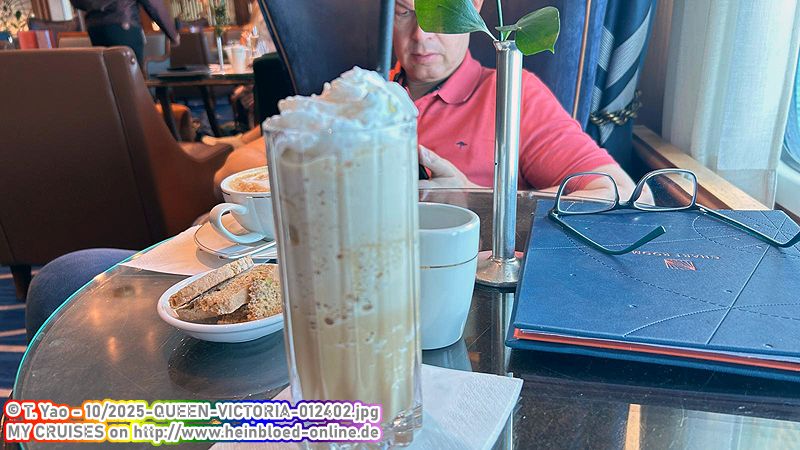 Dann noch die üblichen Goodies. Illy wurde im Café abgeschafft, aber hier auf der Kabine gibt es ihn noch. Zum Glück: Der Nachfolger von Illy an Bord schmeckt Bruno nicht, und daher ist er froh, wenn er zumindest in der Kabine eine Tasse Illy trinken kann.Über das Upgrade von BE auf A2 freue ich mich sehr. Eine kleine Überraschung von Dorothy von Cruise Brother: Canapés. So beginnt der perfekte Urlaub. Selbst wenn wir in BE geblieben wären: 215 USD/Nacht auf einem Balkon auf Cunard - das halte ich für ein sehr gutes Preis-Leistungs-Verhältnis. Leider hat Cunard kommendes Jahr keine Mittelmeer-Saison. Deswegen mal eine Wochenreise auf einer günstigen Balkonkabine mit QUEEN ANNE 215 USD/Nacht, AZURA 180 USD/Nacht, BRILLIANCE OF THE SEAS 215 USD/Nacht, COSTA SMERALDA 180 USD/Nacht, ENCHANTED PRINCESS 150 USD/Nacht, EXPLORER OF THE SEAS 200 USD/Nacht, IONA 160 USD/Nacht, LEGEND OF THE SEAS 315 USD/Nacht, MSC OPERA 145 USD/Nacht, MSC MUSICA 160 USD/Nacht, MSC SEAVIEW 190 USD/Nacht, MSC VIRTUOSA 165 USD/Nacht, MSC WORLD EUROPA 215 USD/Nacht, NORWEGIAN EPIC 195 USD/Nacht, ODYSEE OF THE SEAS 195 USD/Nacht, SUN PRINCESS 200 USD/Nacht, VENTURA 140 USD/Nacht. Also für eine Woche im Oktober 2026 wüsste ich, was ich buchen würde, wenn ich heute buchen würde.